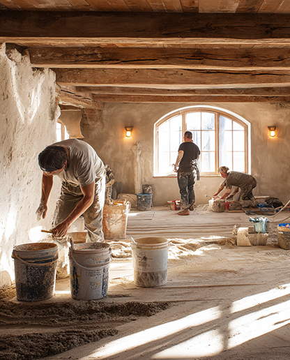 Sinds ’75 maken wij mooi. Kees van der Ende. De eerste laag. Maarten en Ralf bouwen verder aan wat hij begon. Drie generaties vakmanschap. Dezelfde liefde voor het vak, dezelfde aandacht voor detail.